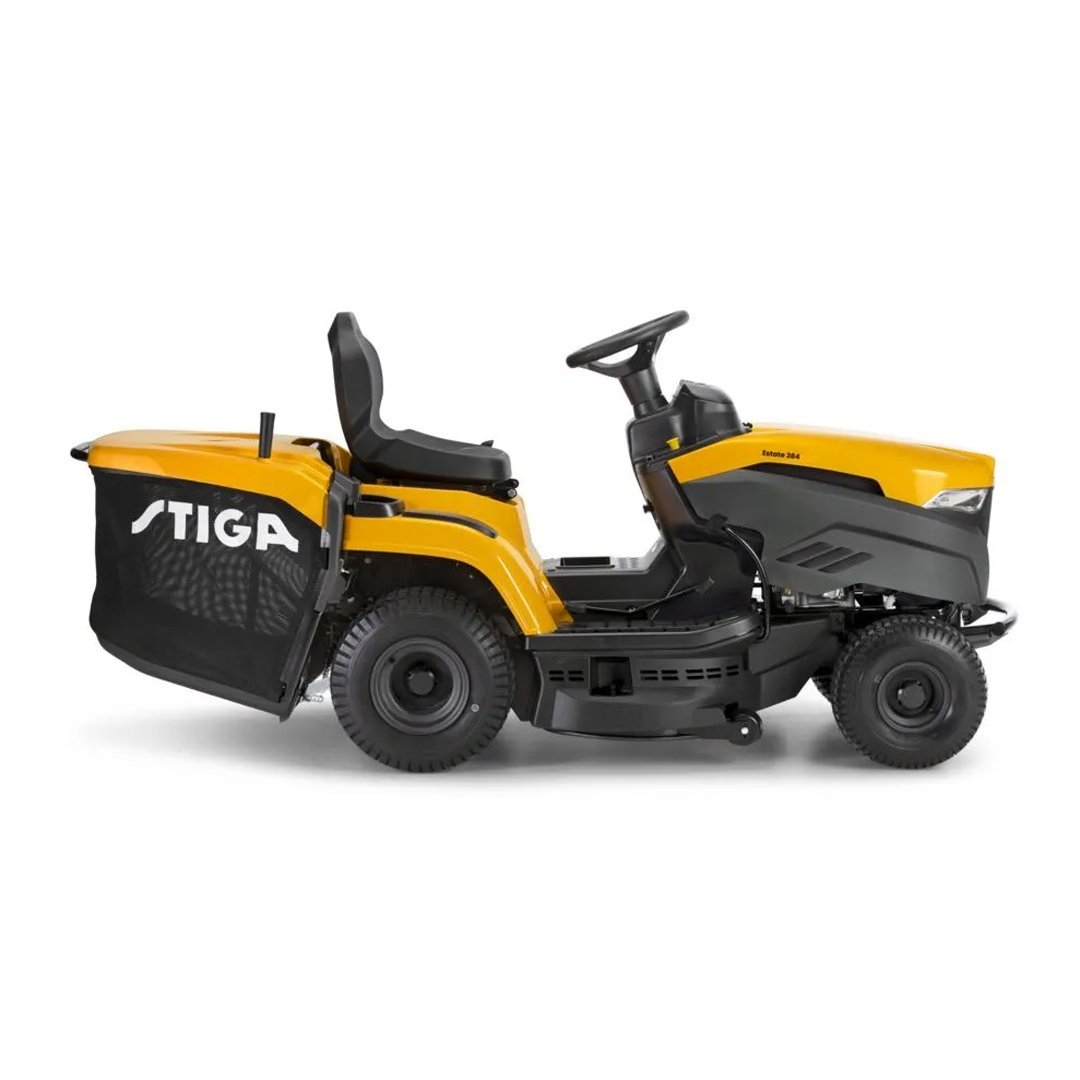 The Stiga Estate 384 Garden Tractor is equipped with a pedal-operated hydrostatic transmission that allows steady forward speed control, without having to change gears. The 84 cm cutting deck has two blades and 7 cutting height settings ranging from 25 to 80 mm, and a convenient electromagnetic blade engagement clutch that is button operated. The Estate 384 boasts a 240-litre rear grass collector and can also be used with the STIGA Multiclip function for mulching. The raised steering wheel makes for ergonomic, comfortable driving. Battery charger and mulching kit sold separately. A STIGA Ergonomic steering wheel works with a STIGA Classic adjustable high-back seat to make it a delight to drive.