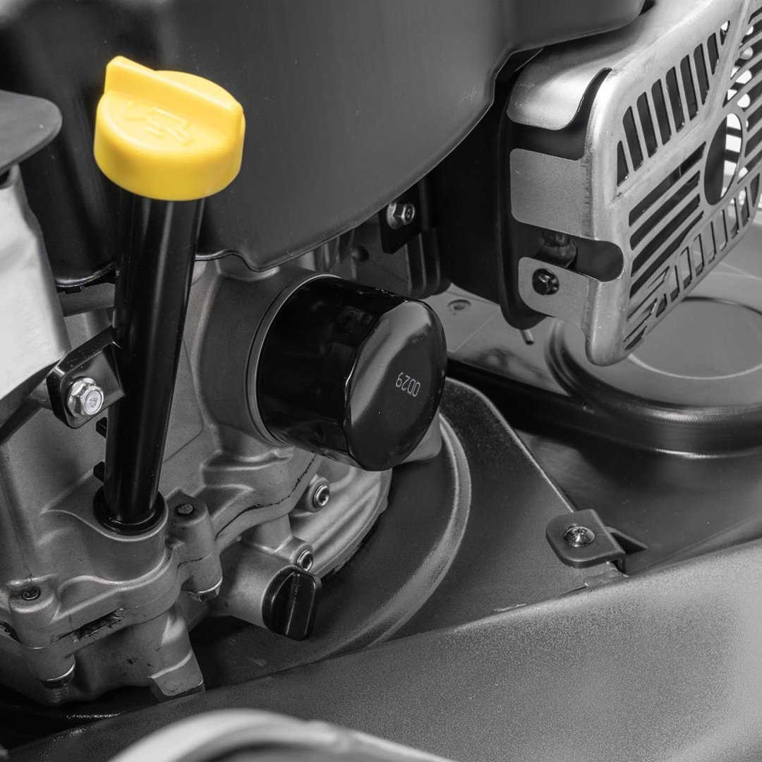 The Weibang Virtue 77 TBO C is engineered for maximum productivity in professional landscaping. This high-performance wide-cut lawnmower features heavy-duty front castor wheels, allowing the machine to turn on the spot for effortless maneuverability around obstacles. When precision is needed for stripes, the front castors include a secure locking mechanism for straight-line tracking.