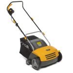 The Stiga SV213E scarifier and lawn aerator is powered by a 1300 W electric motor and has two interchangeable kits: 36 spring tines for aeration and 16 blades for scarifying. The working depth can be set to between -6 mm and +4 mm. Moss and residues are collected in the 40 litre rear collector. The SV 213 E can be used as a scarifier to work the surface of the soil or as a lawn aerator to make furrows in the soil, allowing water and oxygen to reach the grass roots and removing dead roots at the same time. This accelerates new shoot growth, creating the ideal conditions for a perfect and healthy lawn, with the further advantage of reducing the amount of moss while saving on fertiliser.