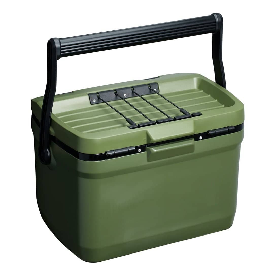 Ruggedly lightweight, leak-free and boasting more than twice the foam insulation of a typical cooler, this easy-carry outdoor cooler is ideal for tailgates, fishing trips and even all-day festivities. It’s roomy enough to hold 21 cans of your favourite brew or soda and can keep ice frozen for over a day. There’s even an adjustable bungee system for securing your favorite Stanley bottle to the lid.